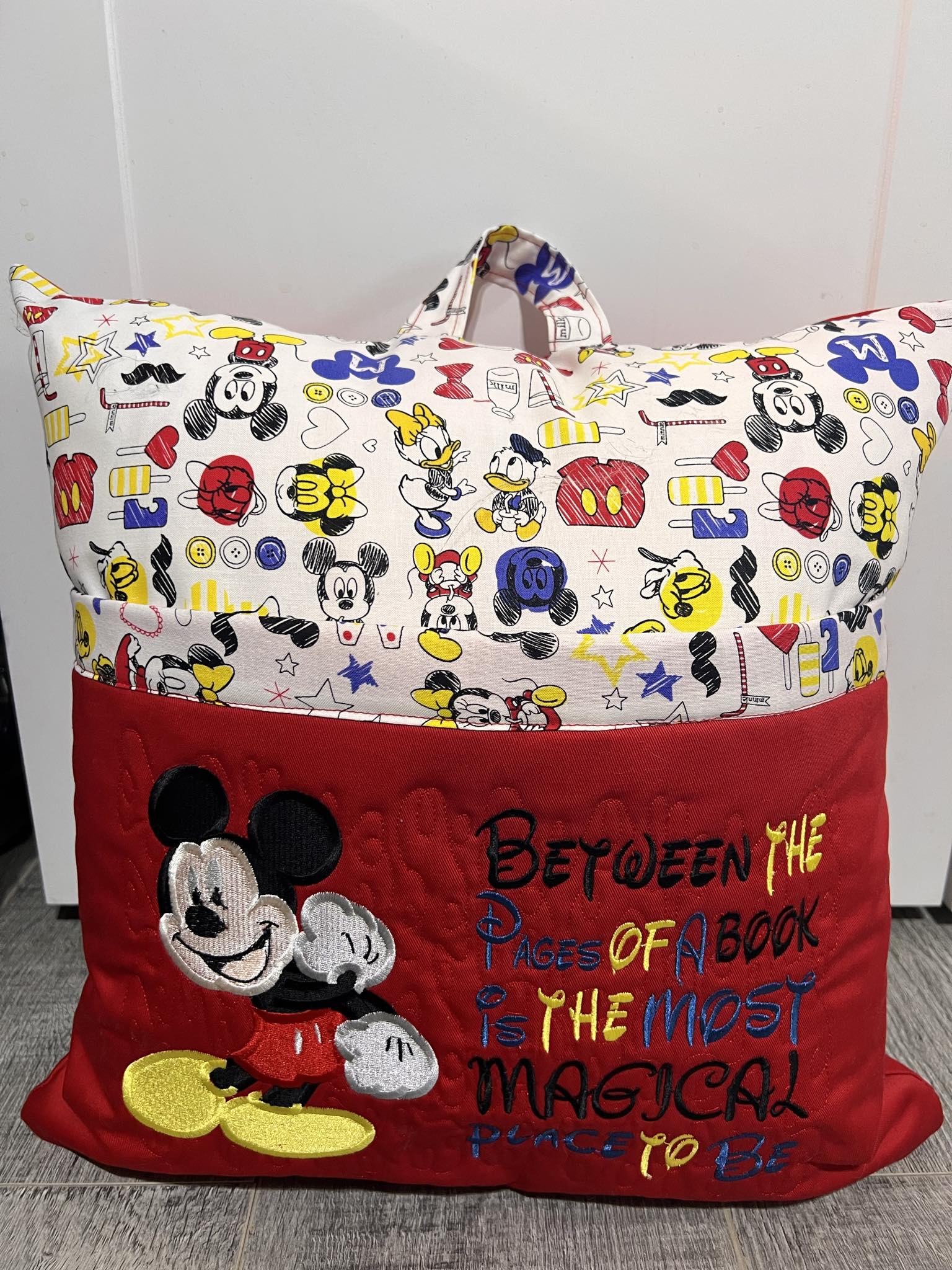 These embroidered reading pillows are the perfect gift for your little readers. Each one is handmade with quality in mind. Our covers measure approximately 18"x18" and have a pocket in the front to store a book or magazine.