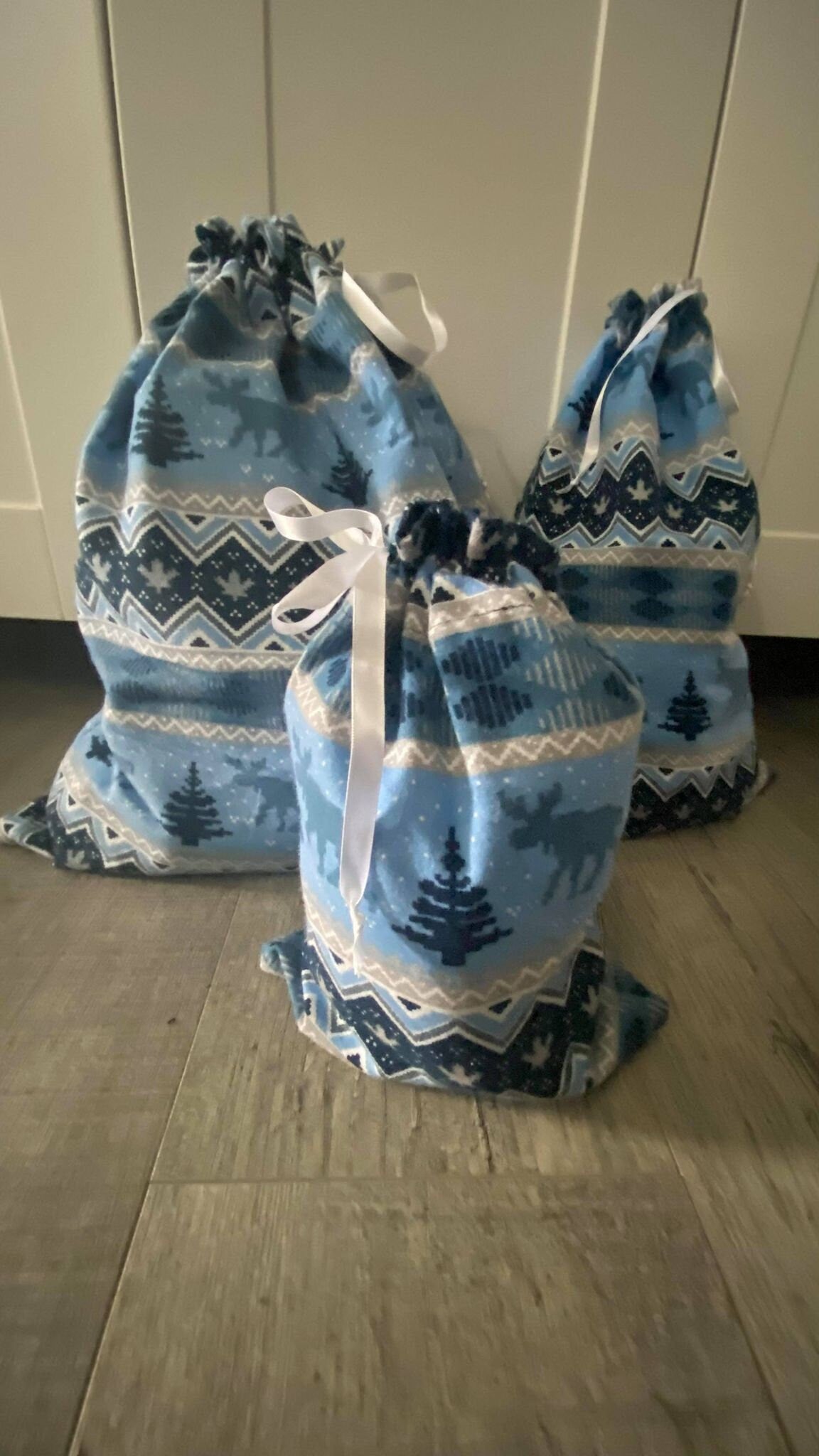 These reusable gift bags are made from quality flannel or cotton with a ribbon tie and are a great, eco-friendly way to give your Christmas gifts this year. They are also a great piece for your holiday home decor.